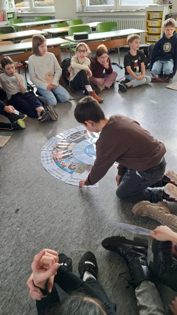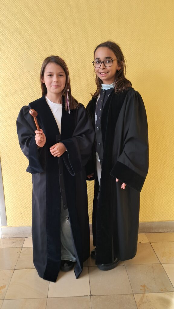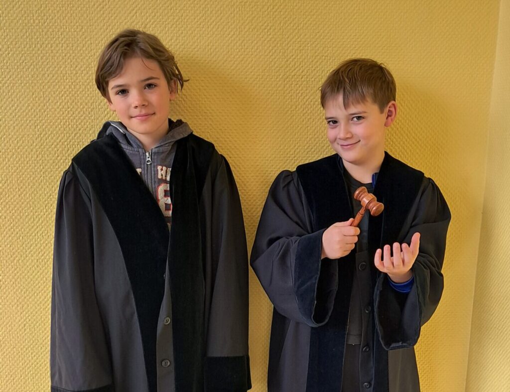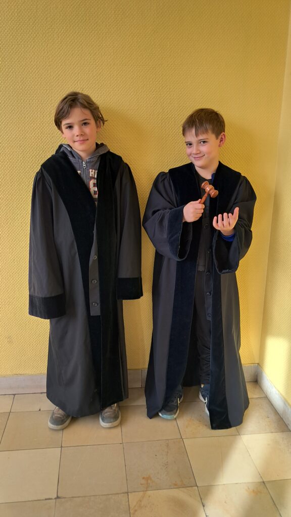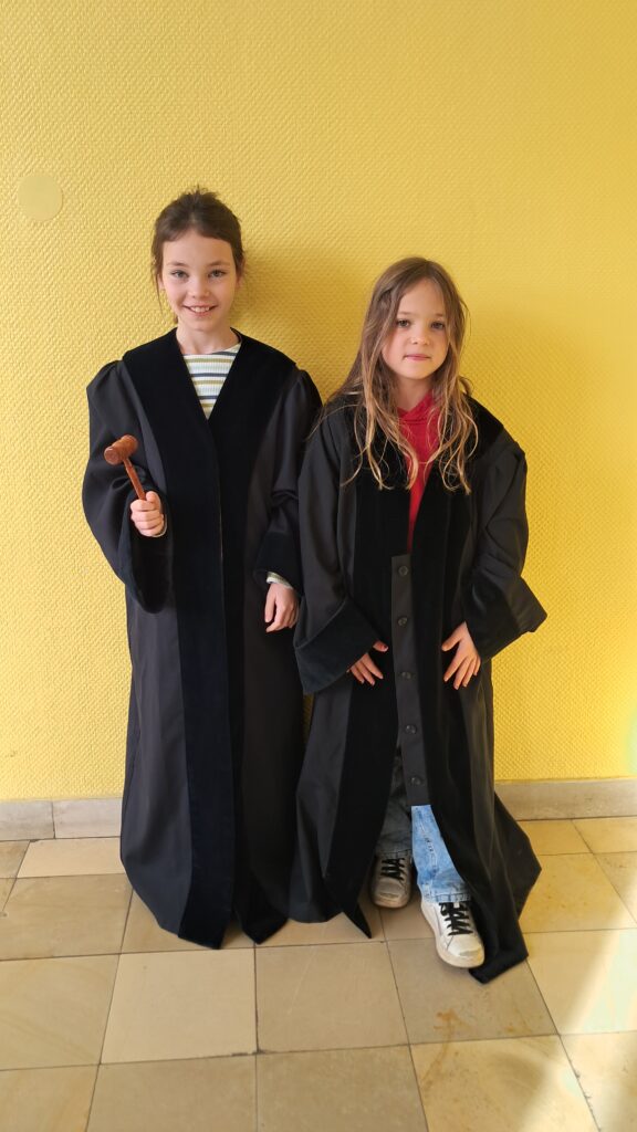Nach den Herbstferien erhielten die Waschbären sowie die Füchse und Hummeln einmal pro Woche Besuch von einer Richterin. Sie erzählte aus ihrem Berufsalltag, sprach mit den Kindern über Kinderrechte, Smartphones und das Internet – und natürlich durften alle auch einmal die Richterrobe anprobieren.