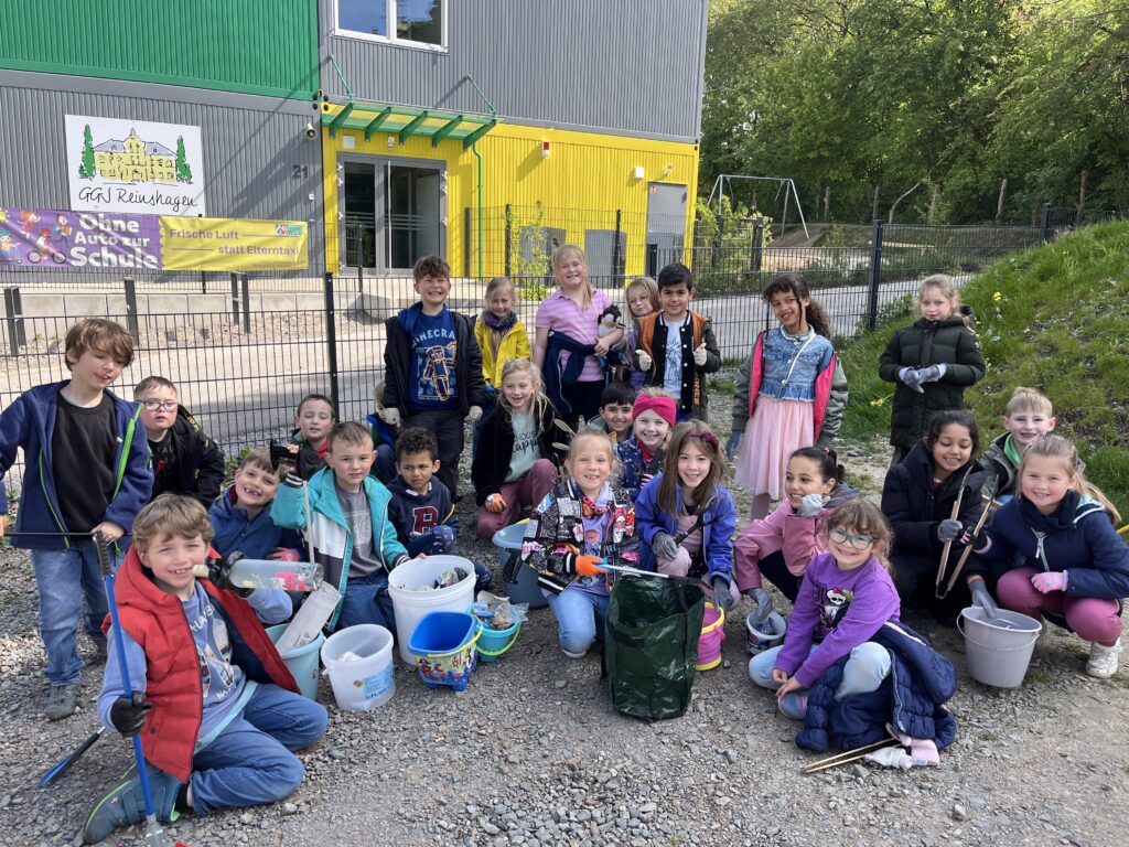 Das ließen sich die Kinder der GGS Reinshagen nicht zweimal sagen. Mit Müllzangen, Grillzangen, Handschuhen und Mülleimern machten sie sich auf den Weg, um den Bereich um ihre Schule herum großräumig vom Müll zu befreien. Voller Motivation wurde wie an Ostern gesammelt bis der Eimer voll oder die Zeit um war. Viele Kinder waren sich einig – das können wir ruhig öfter als einmal im Jahr machen!